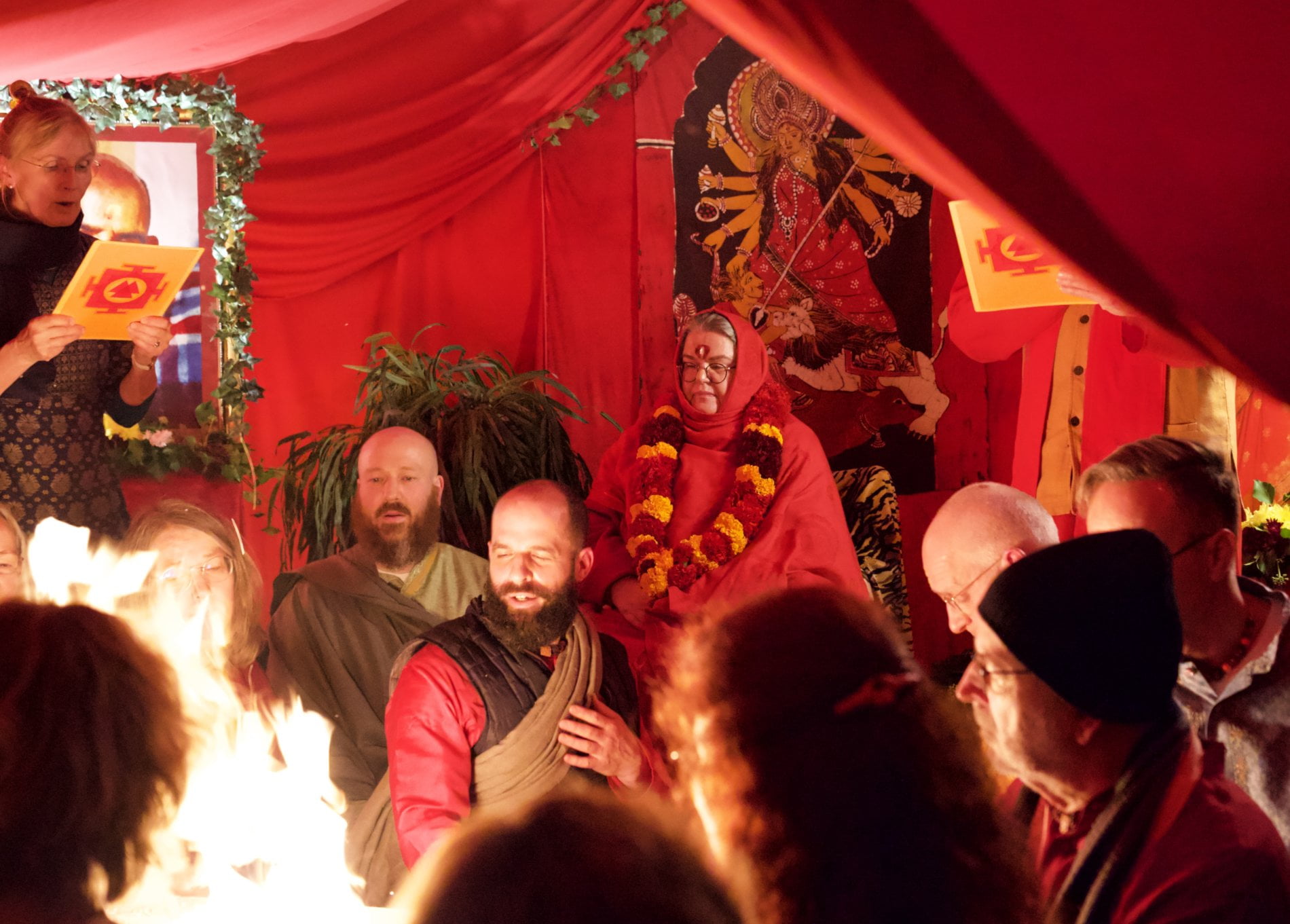 On a little card each of us had written down which obstacle she or he wanted to hand over to the flame of the Divine Mother – and this year it wasn’t us coming to Ma with our little cards, instead Ma came to each one of us, right through the crowd, collecting all the cards. What a celebration!